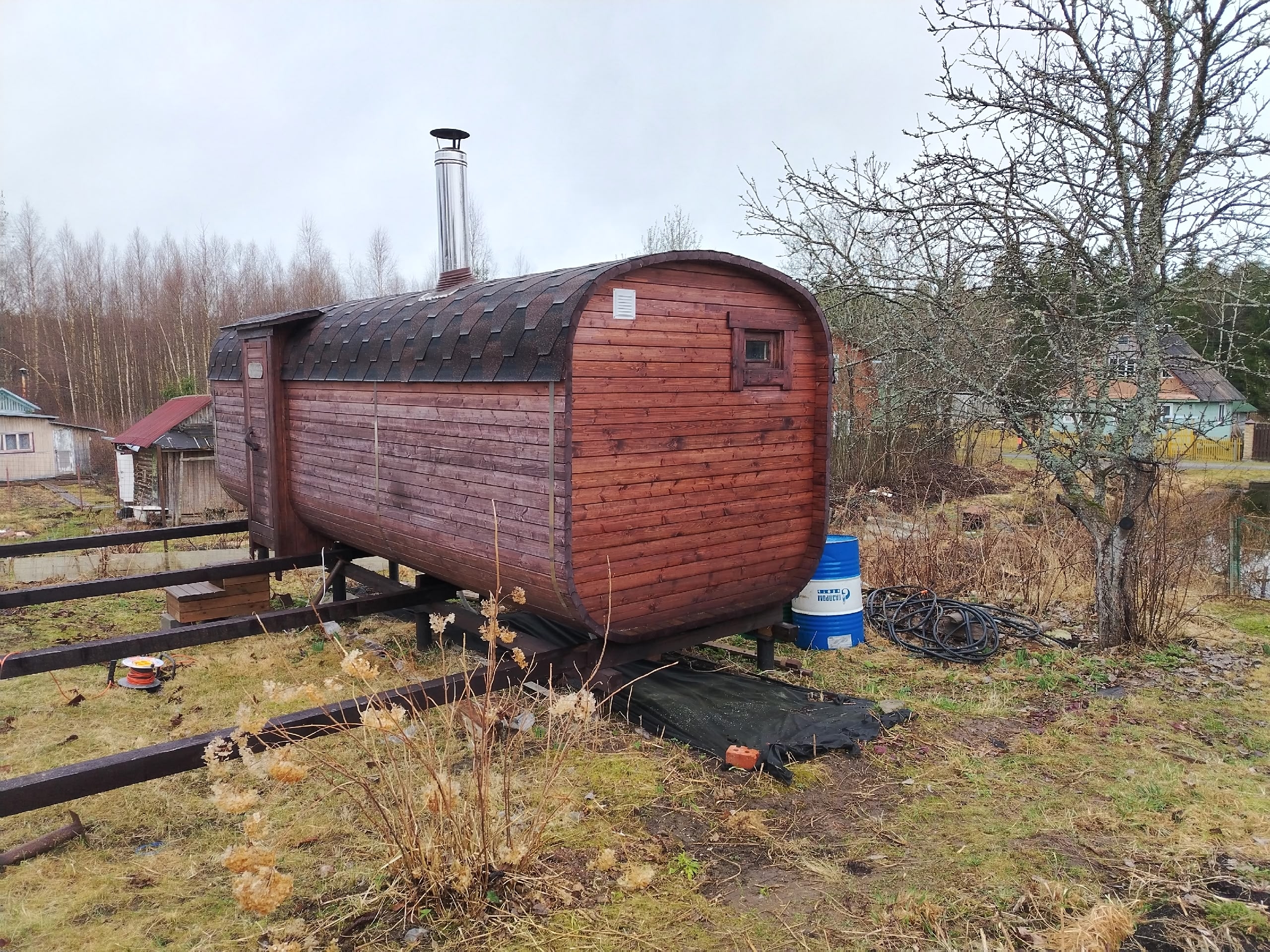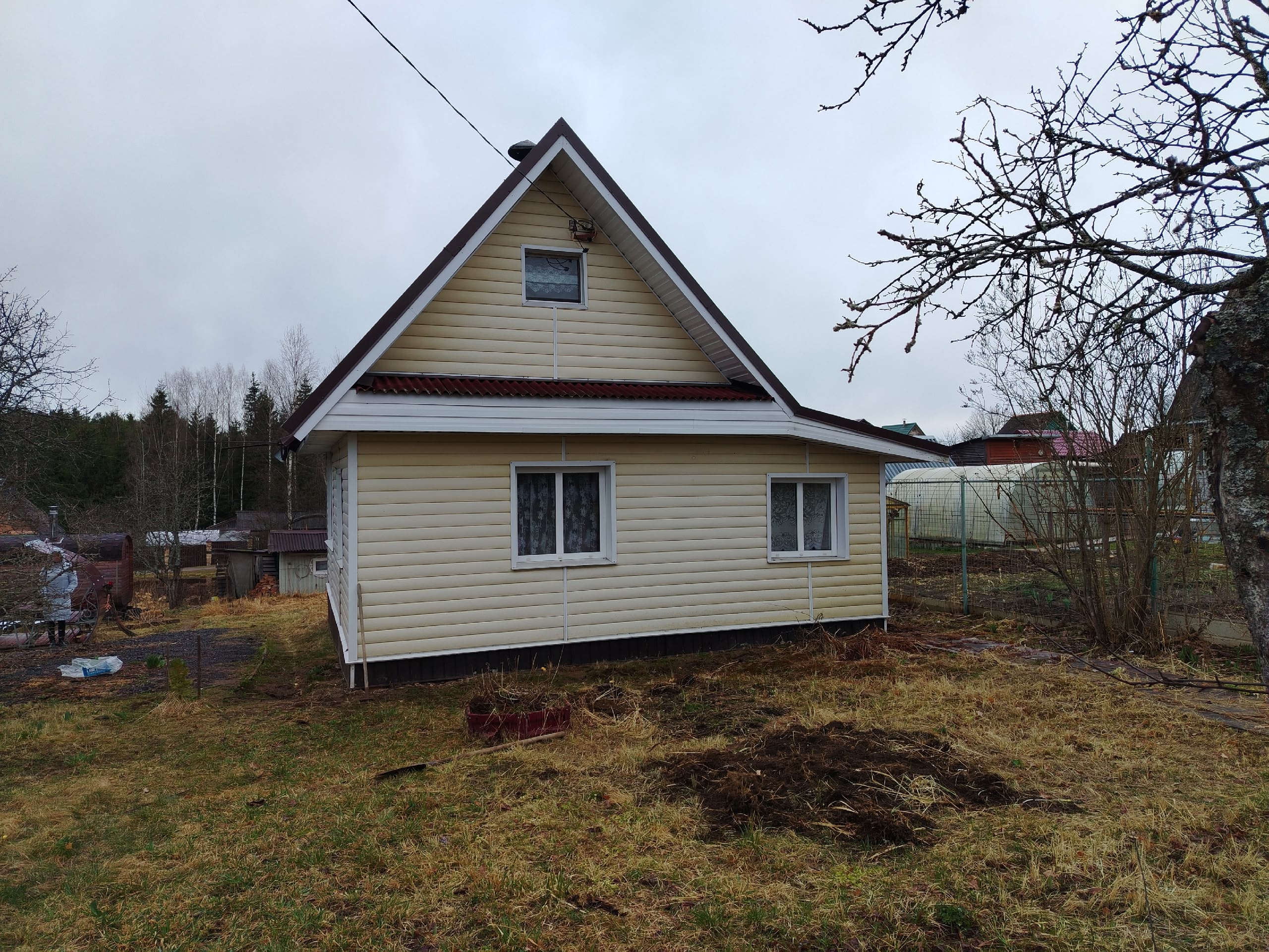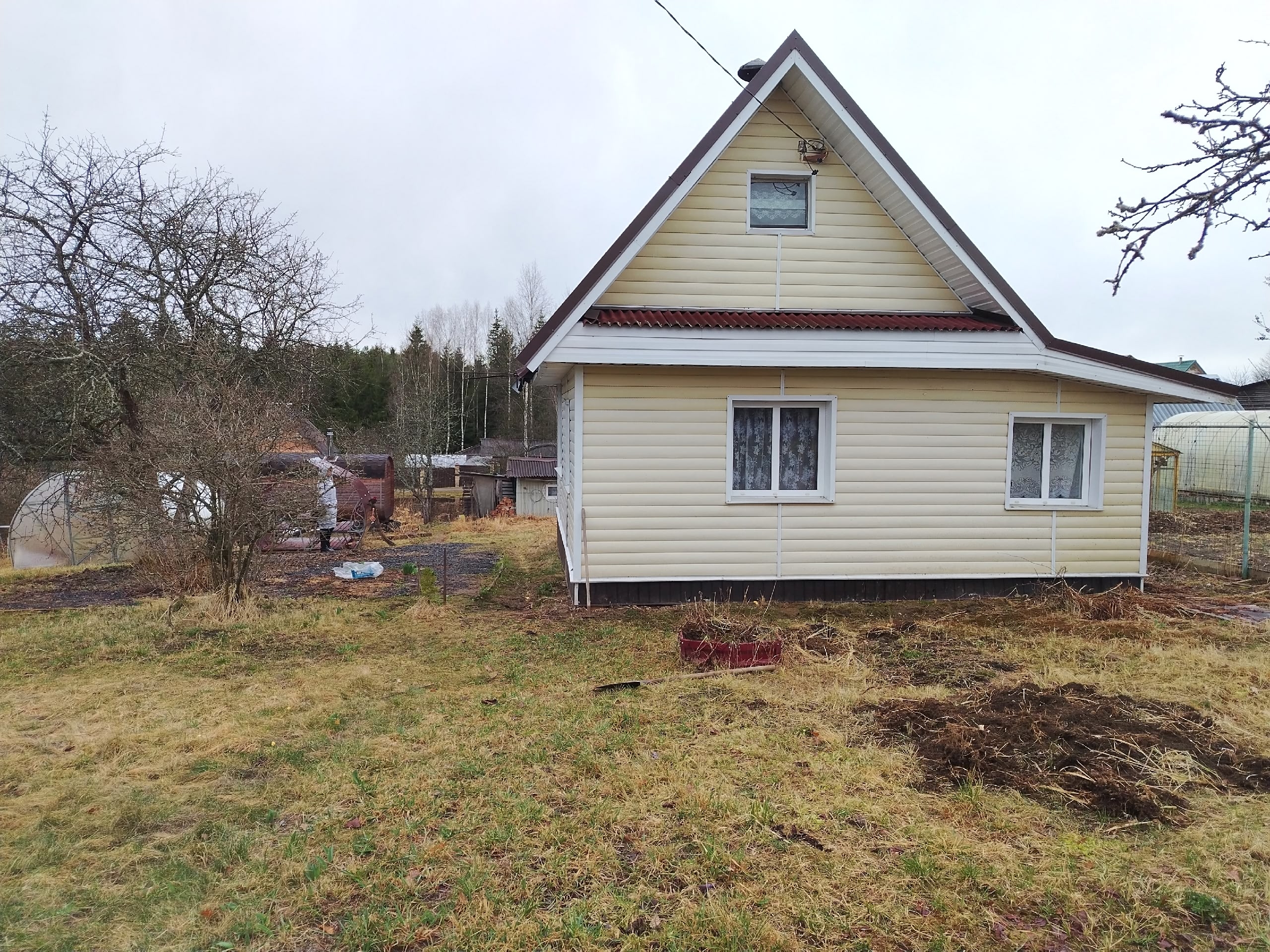 Продается дача в СНТ Кайвакса, (Транспортник), 16-я линия, участок 7,5 соток. На территории расположены дом, баня-бочка, теплица и беседка. Также есть плодовые деревья.